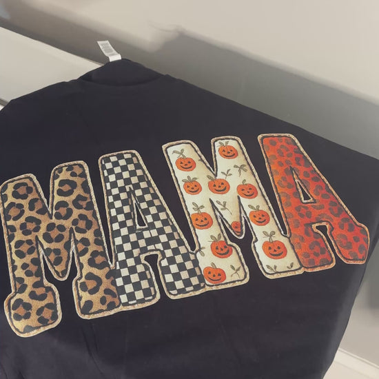 Halloween MAMA Patchwork Tee | Comfort Colors Shirt for MAMA • NANA • GIGI • MIMI