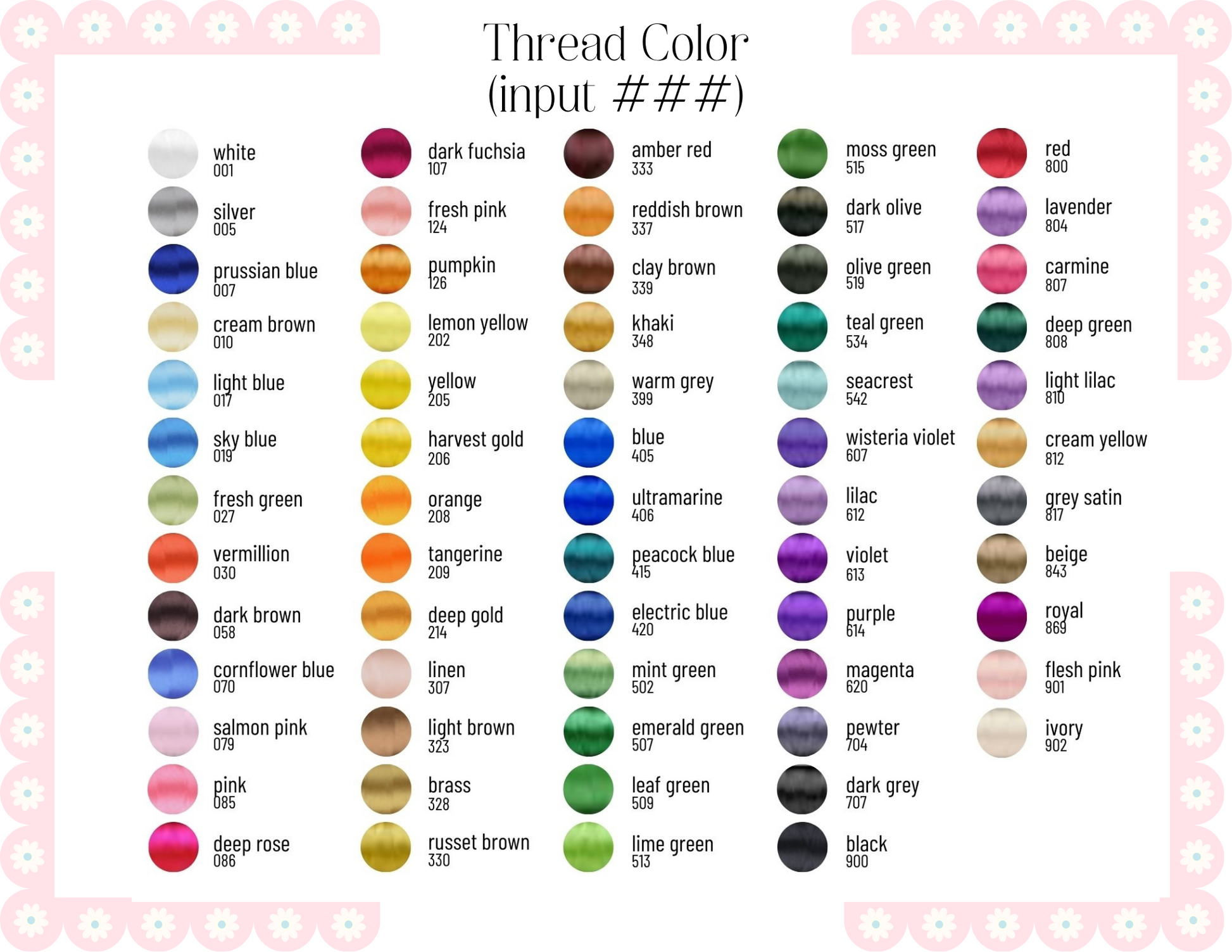 • Choose from multiple thread options (colors shown are 519 & 542)
